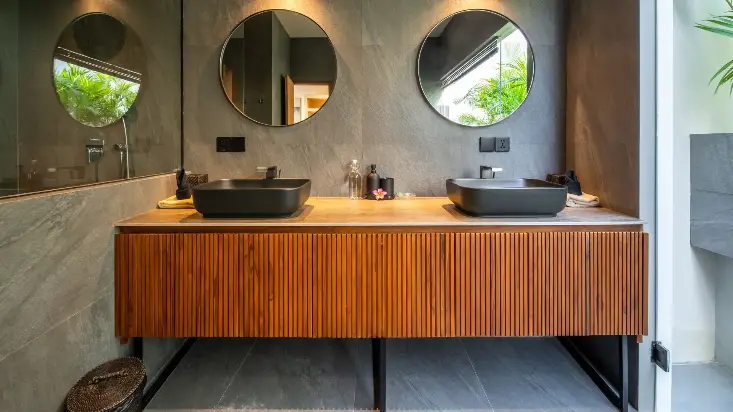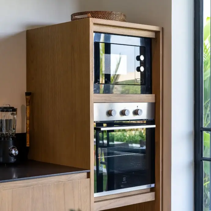 Tabu handled the complete furnishing of the villa, including kitchens, wardrobes, vanities, and storage. We also supplied all loose furniture for the bedrooms, living, and outdoor areas. A standout feature of this project is a large-scale custom wall piece — designed, built, and installed as a focal point in the home.